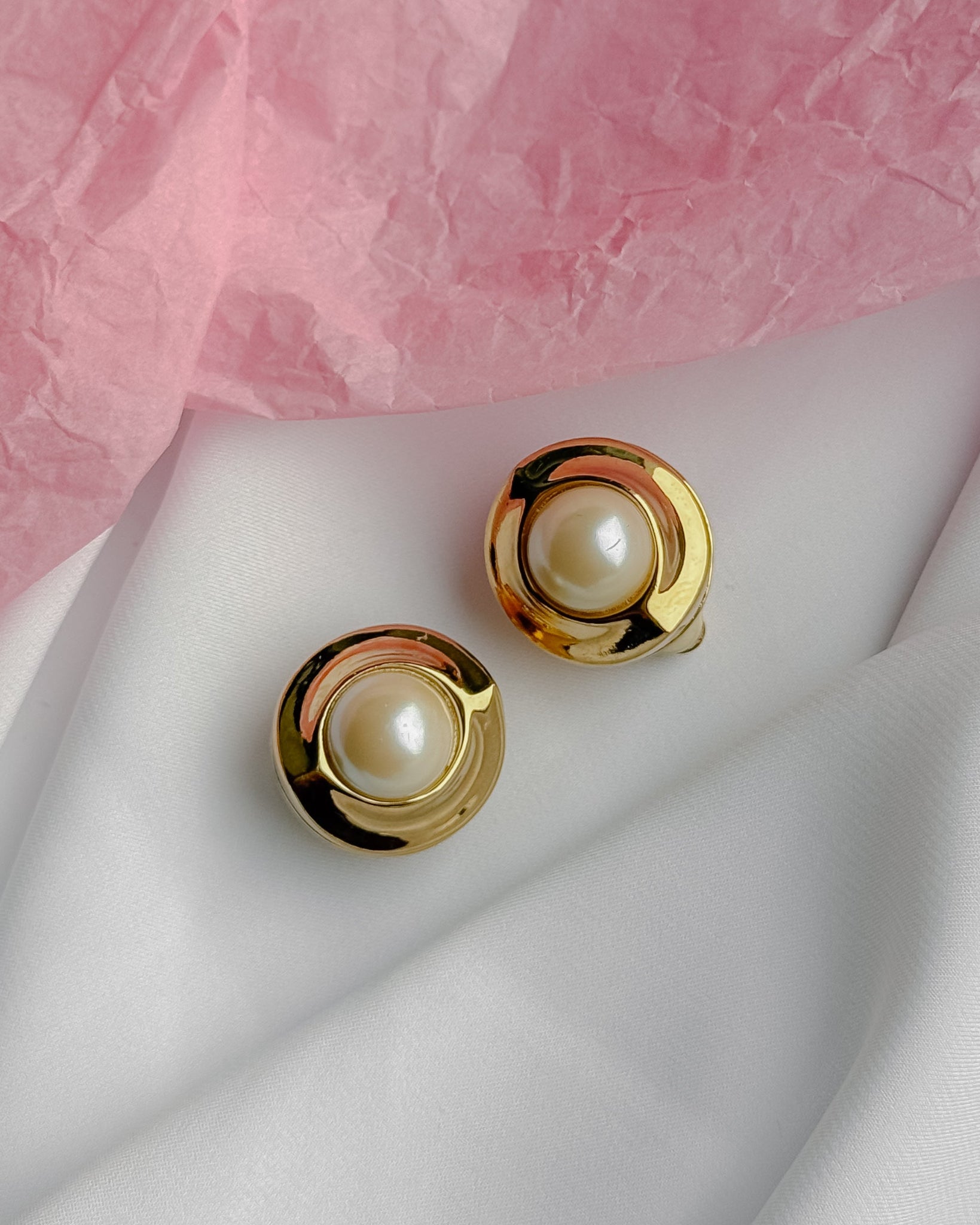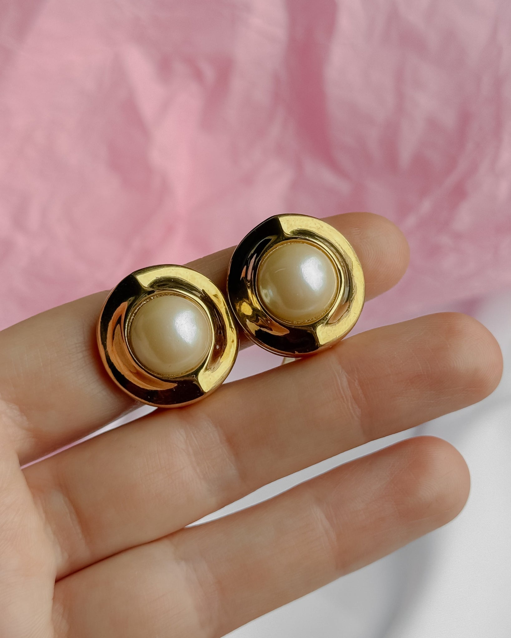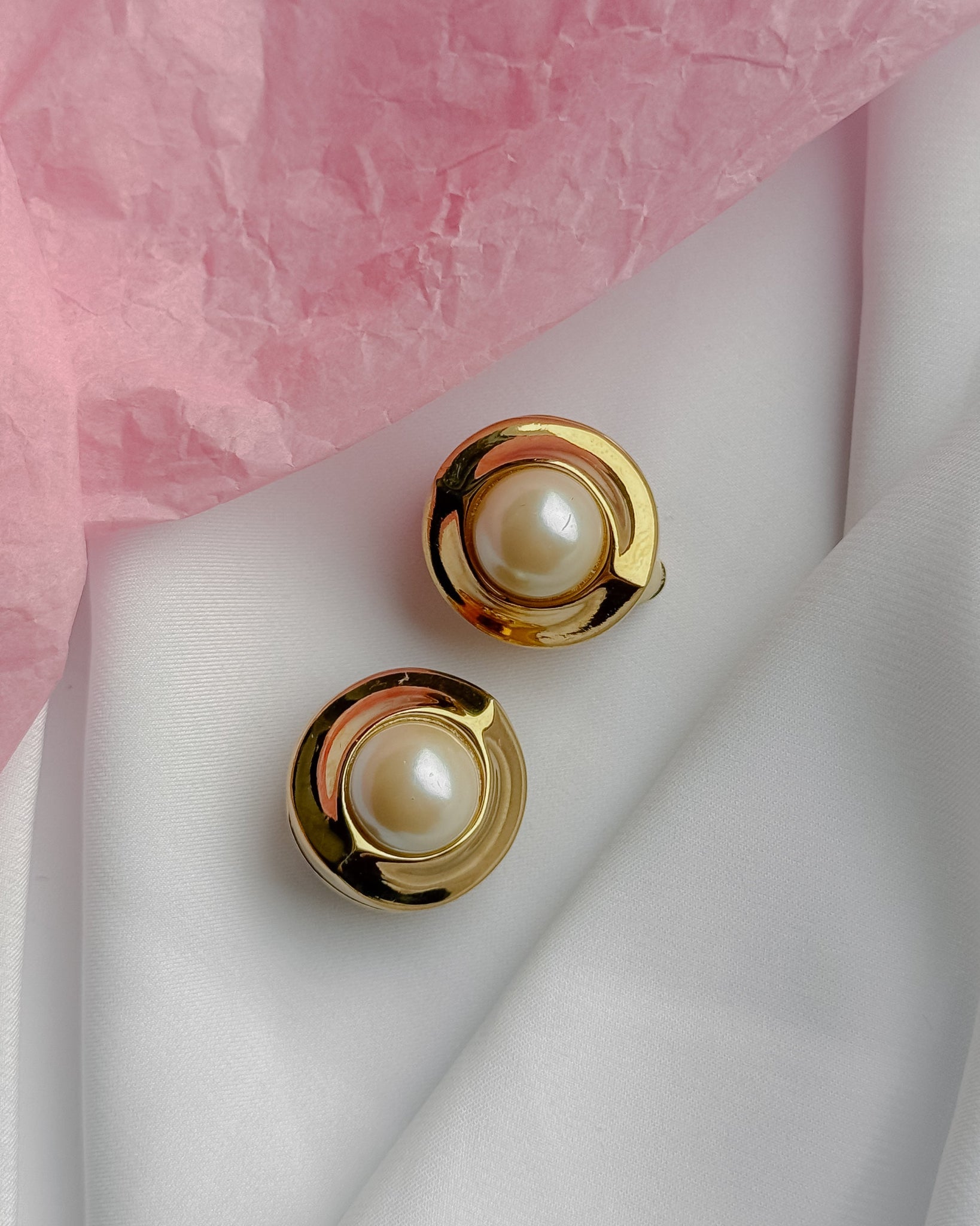 Klipsy Givenchy, pozłacane ze sztucznymi perełkami. W bardzo dobrym stanie. Średnica 1,7 cm. Stan 9/10