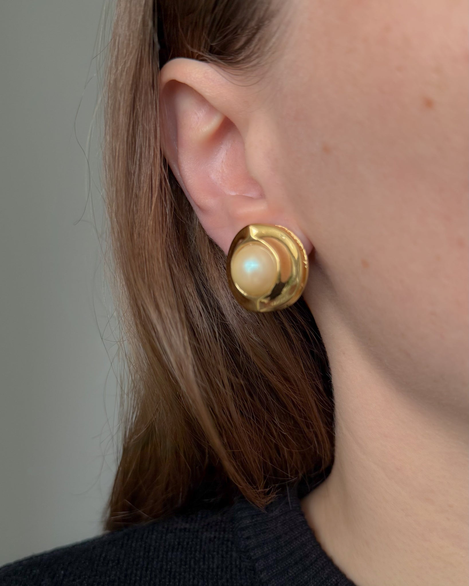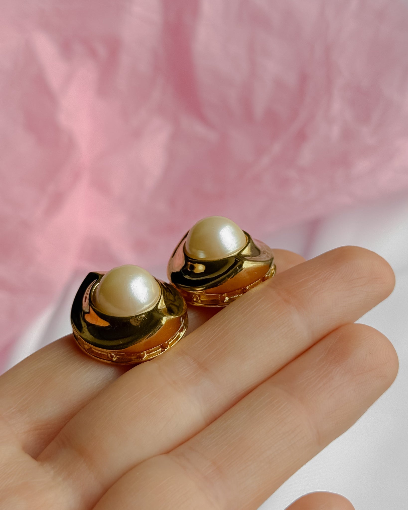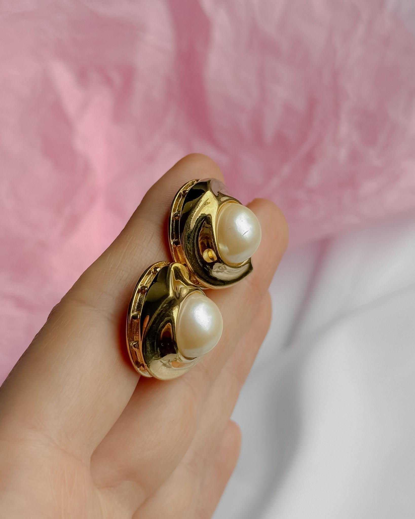 Klipsy Givenchy, pozłacane ze sztucznymi perełkami. W bardzo dobrym stanie. Średnica 1,7 cm. Stan 9/10