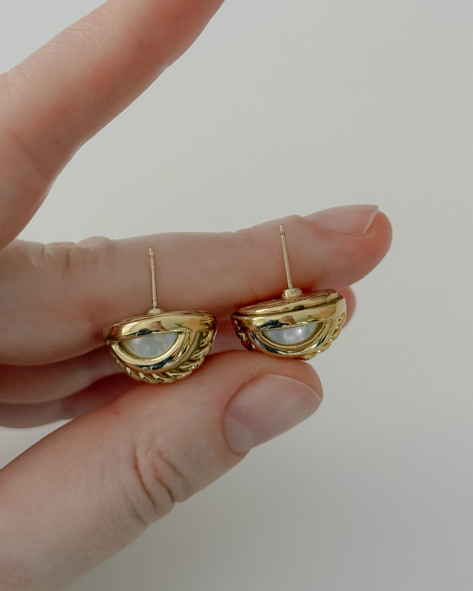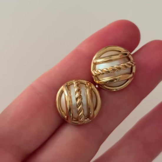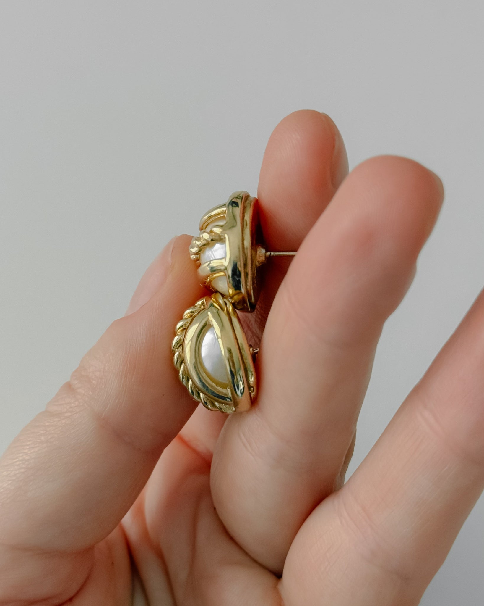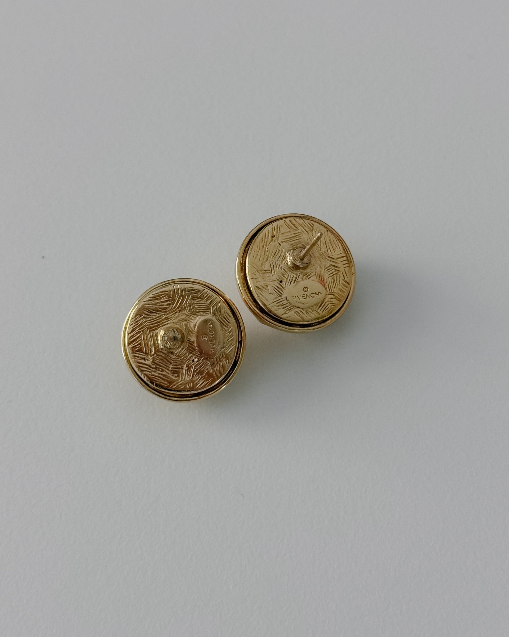 Kolczyki Givenchy, pozłacane ze sztucznymi perełkami. W bardzo dobrym stanie. Średnica 1,3 cm. Stan 8,5/10