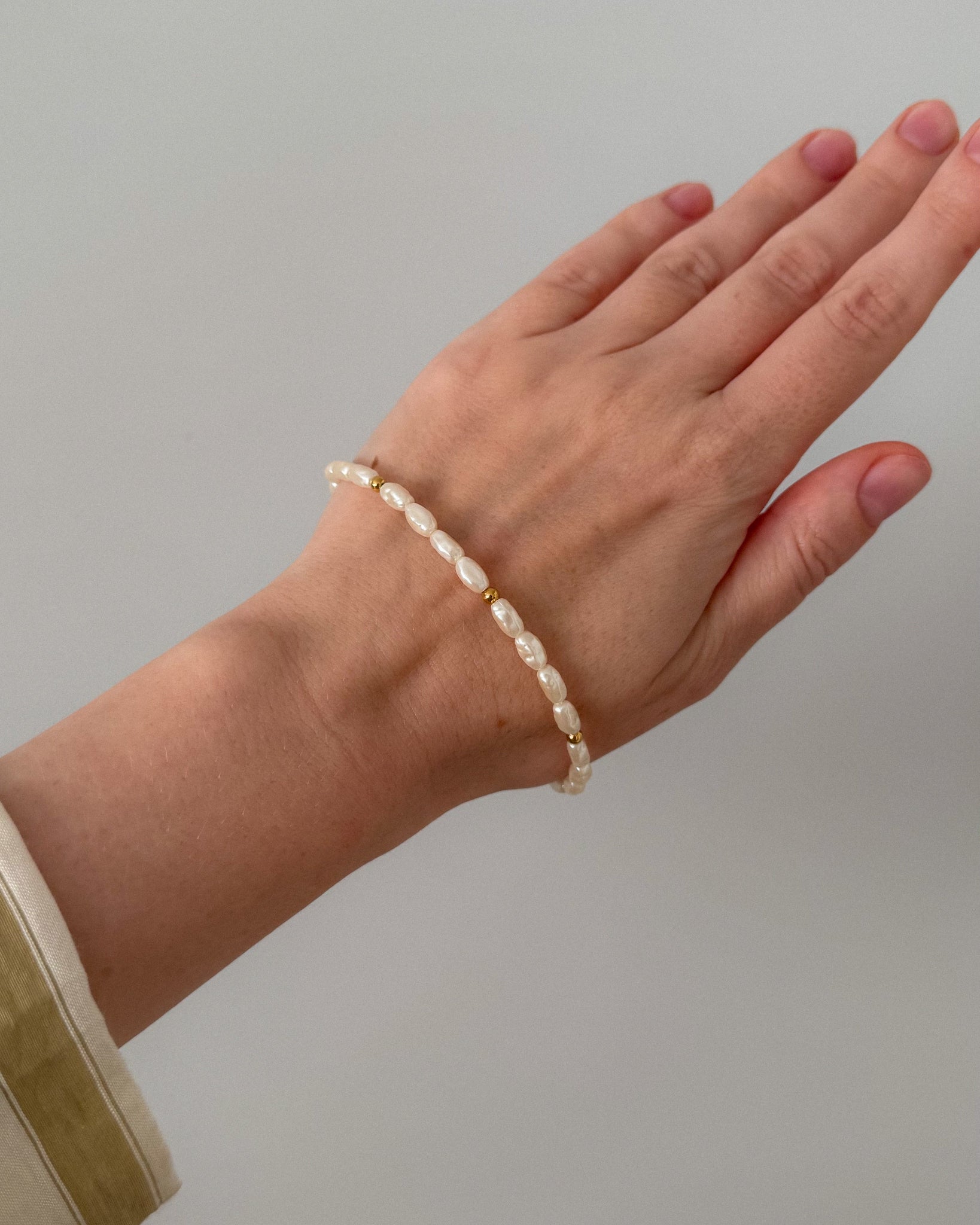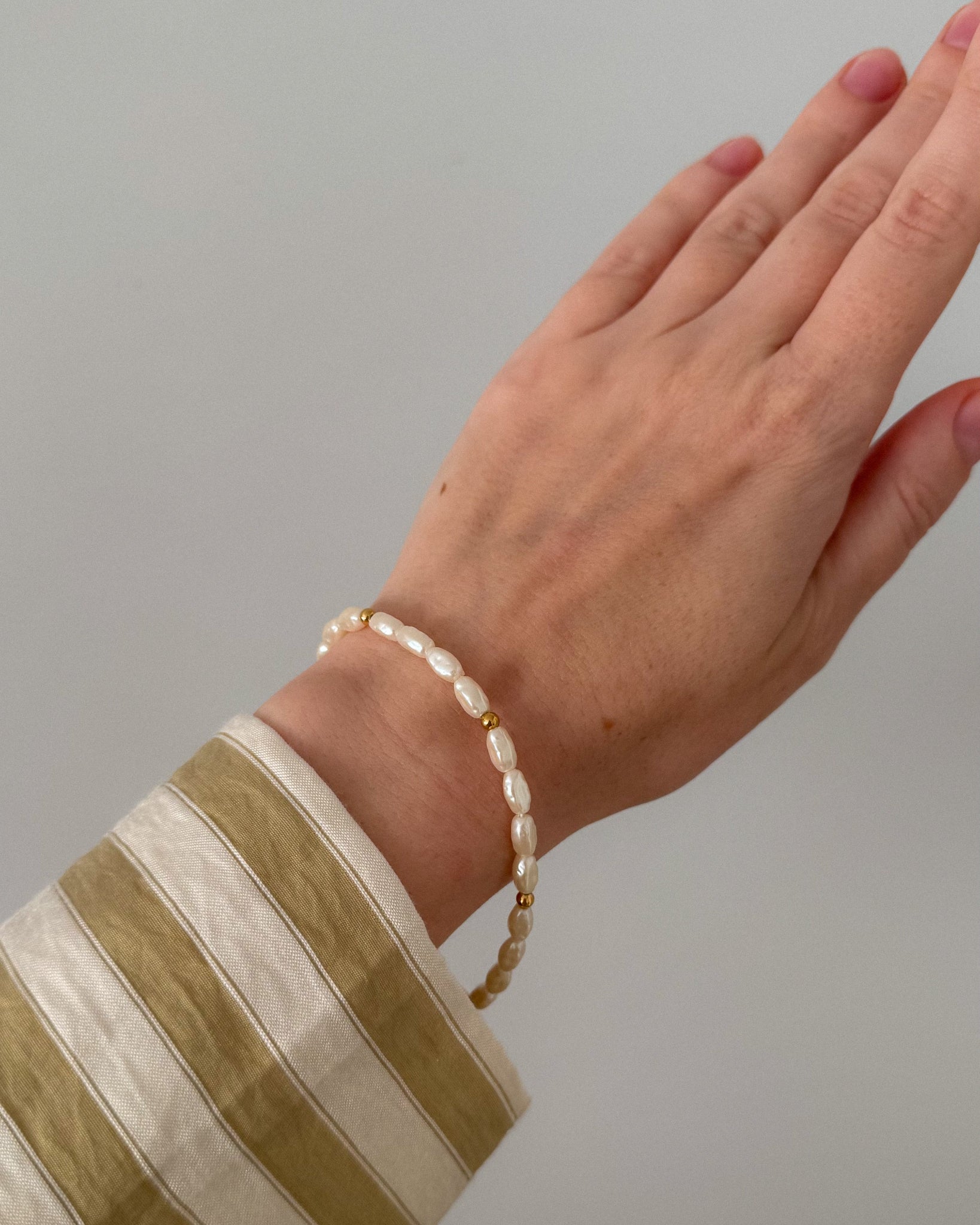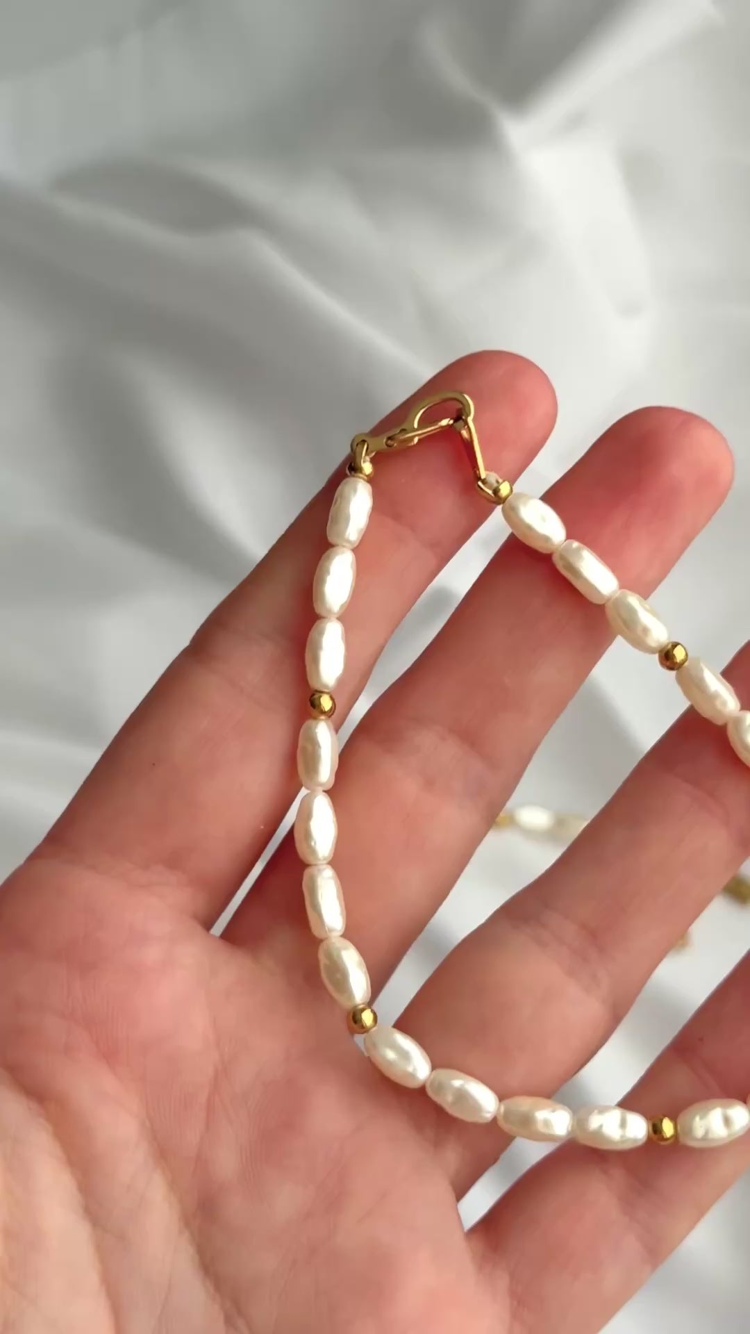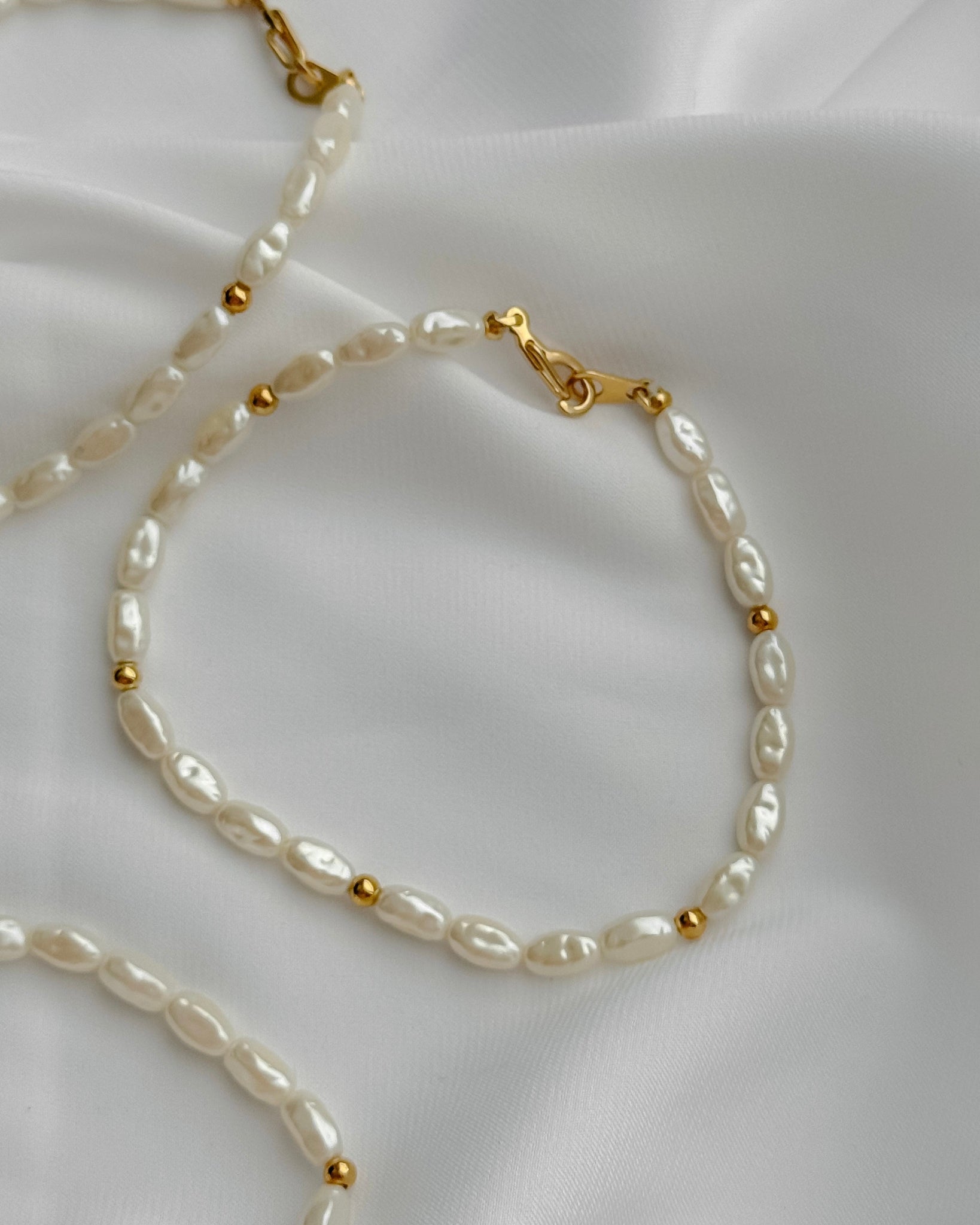 W bardzo dobrym stanie. Sztuczne perły, ale wyglądają jak prawdziwe. Długość: bransoletka 20 cm.