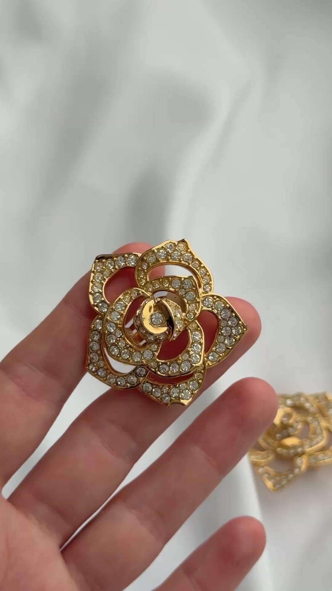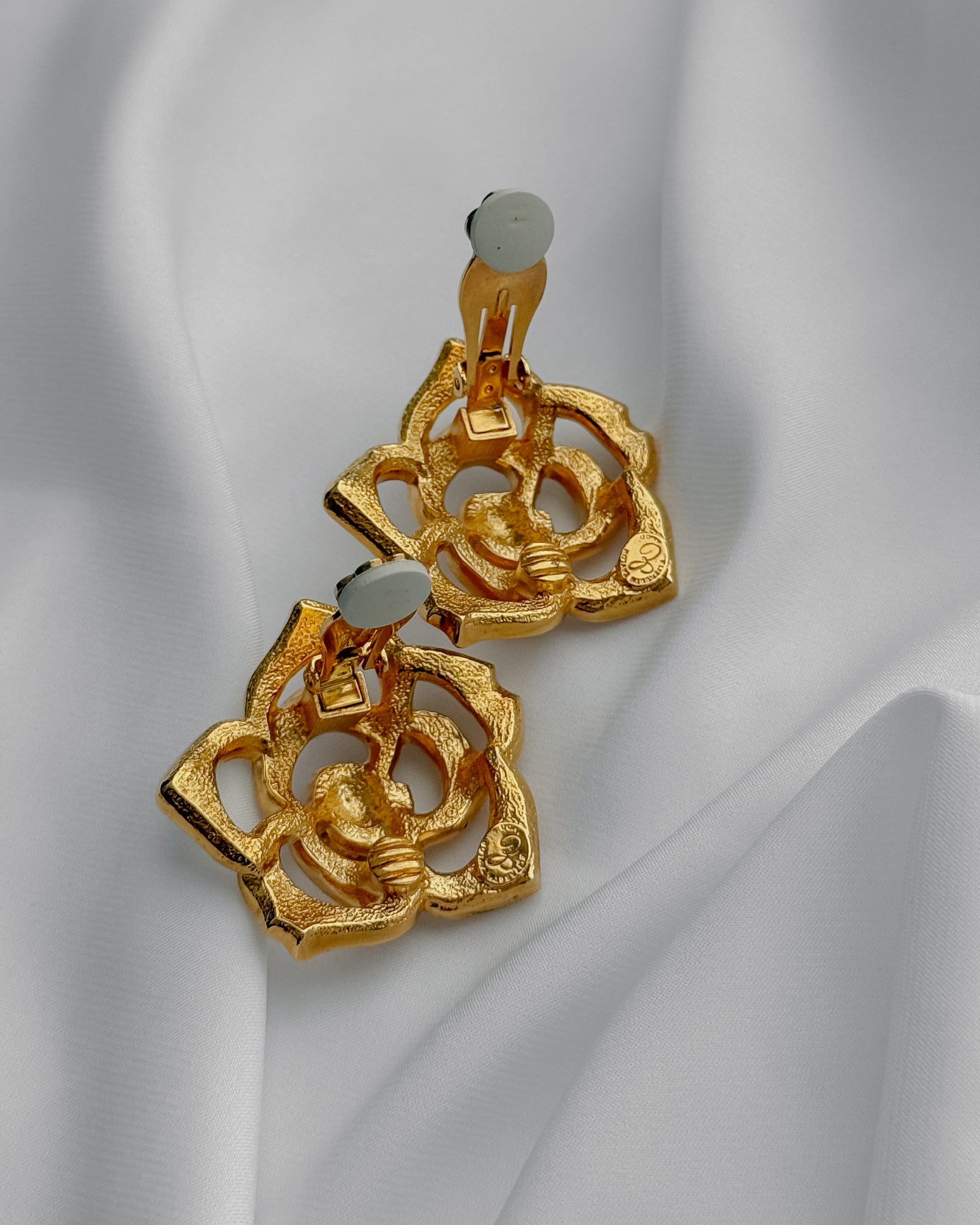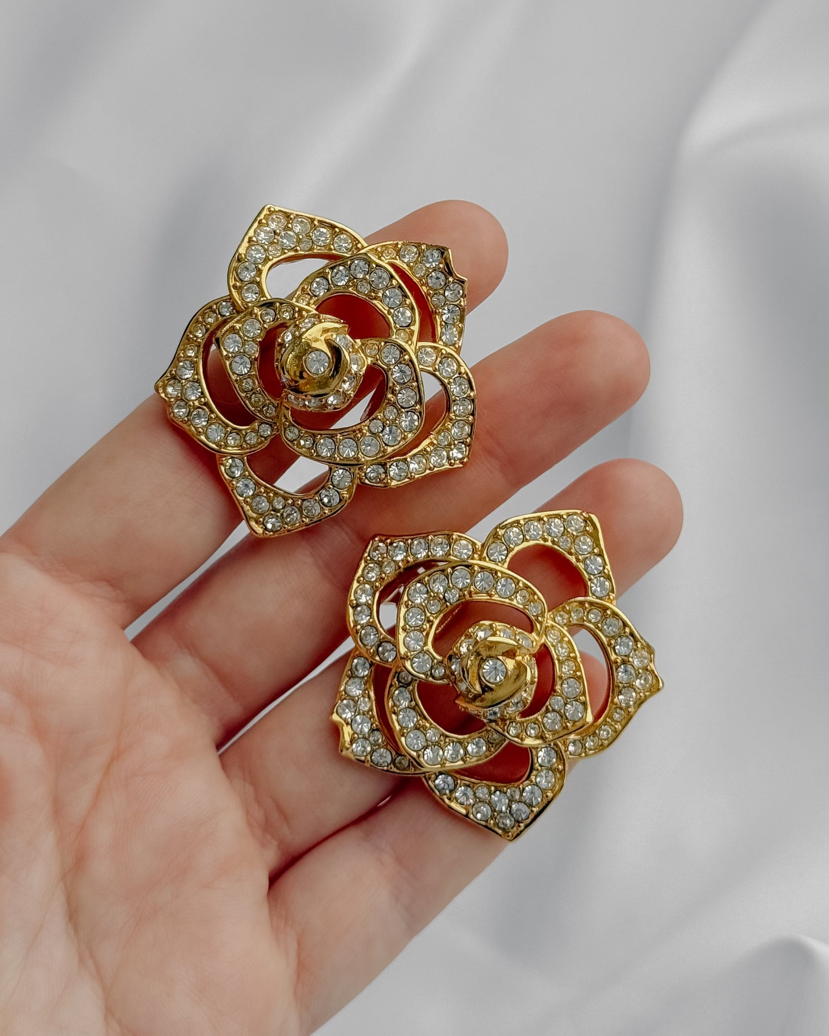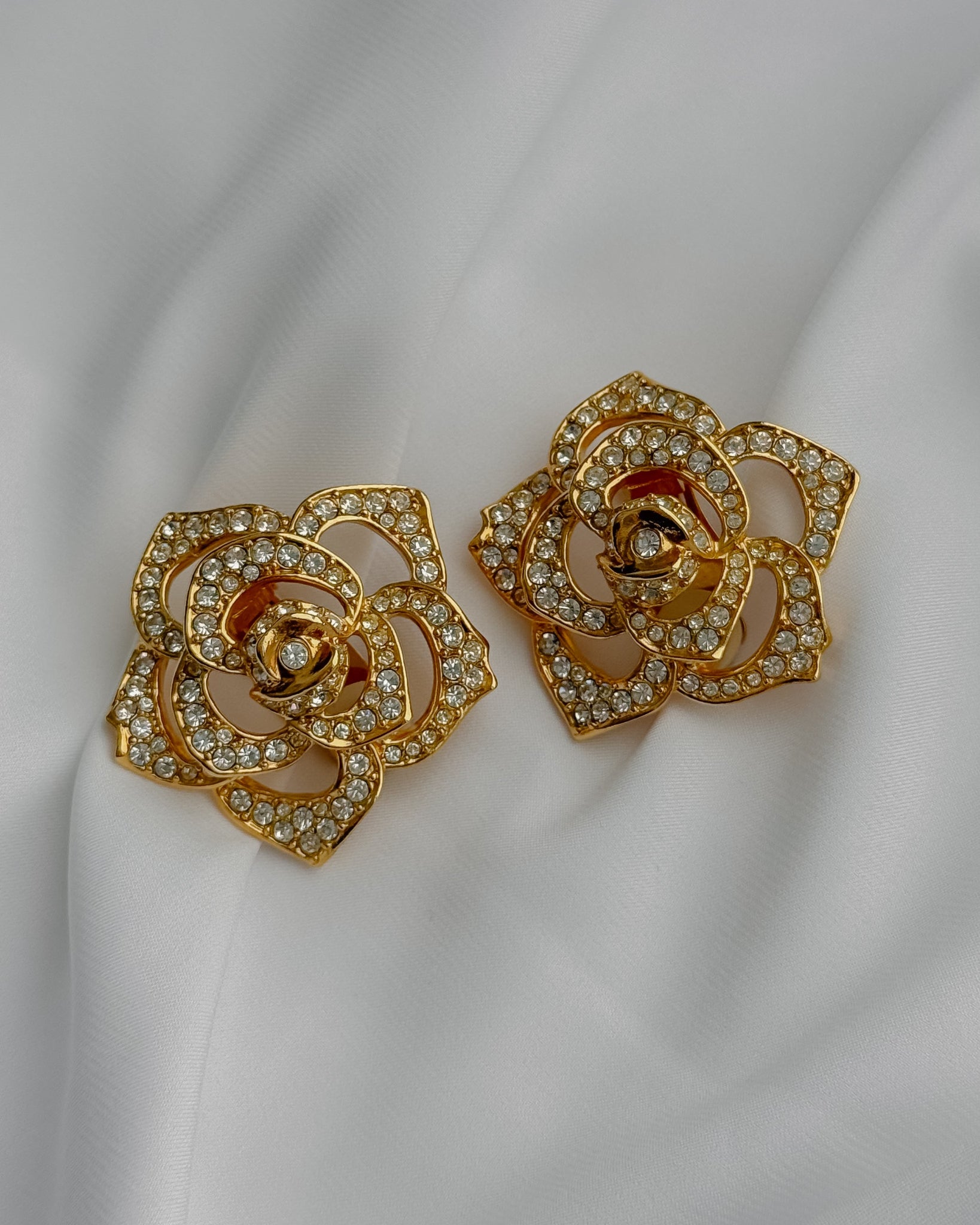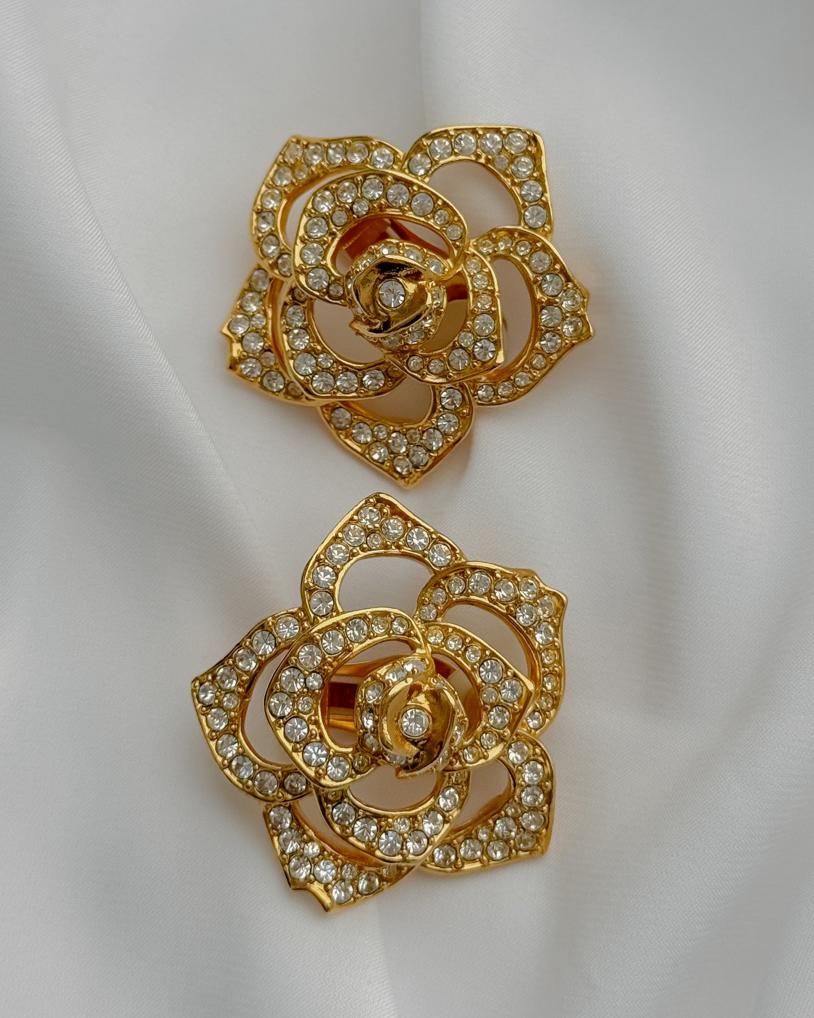 W idealnym stanie. Kolekcja Pave Crystal Rose z 1995 roku. Klipsy w kształcie róży o zachwycającej urodzie, wysadzane kryształkami. W takich klipsach aż chce się błyszczeć na Red Carpet – dokładnie tak, jak robiła to Elizabeth. Średnica 4 cm.