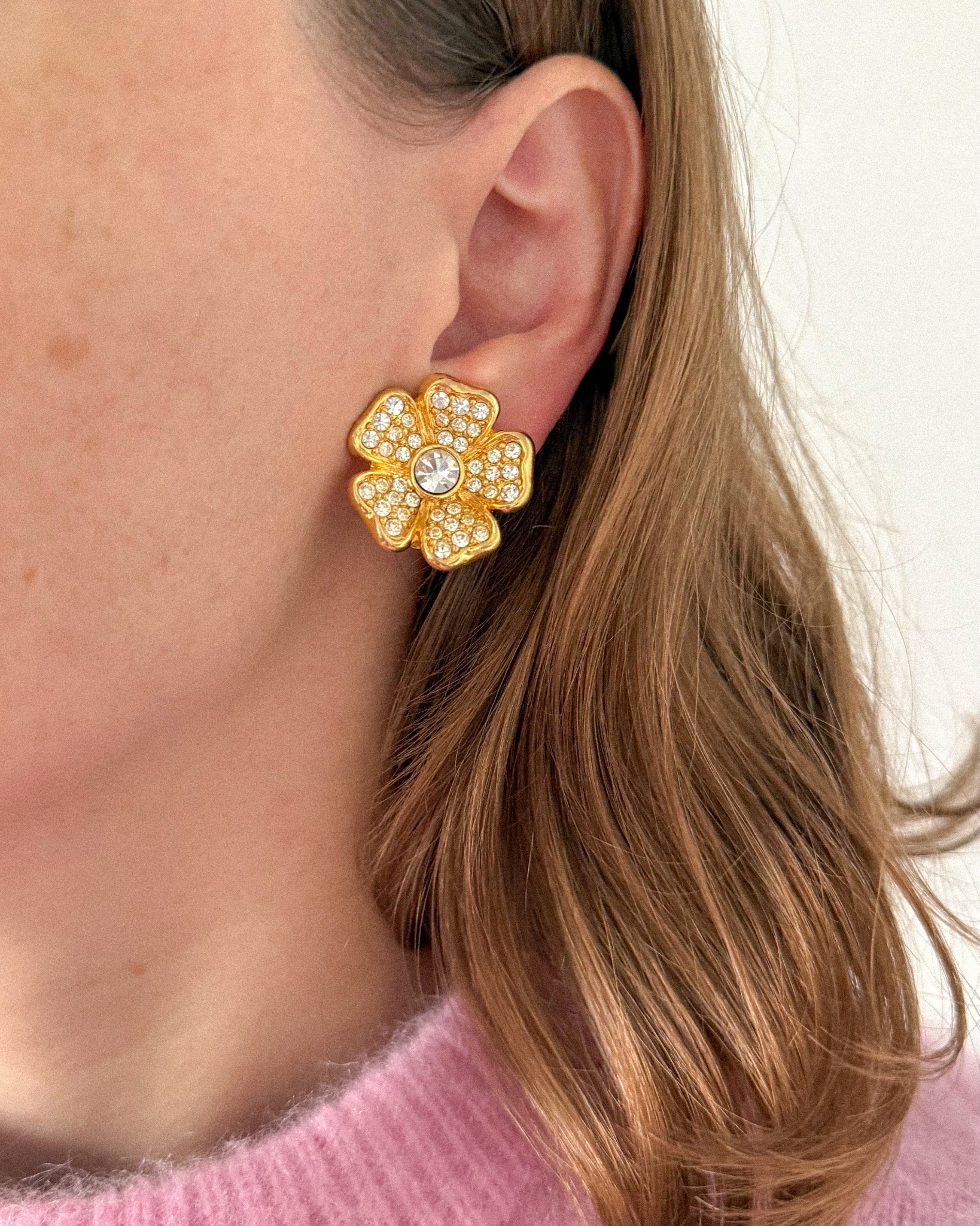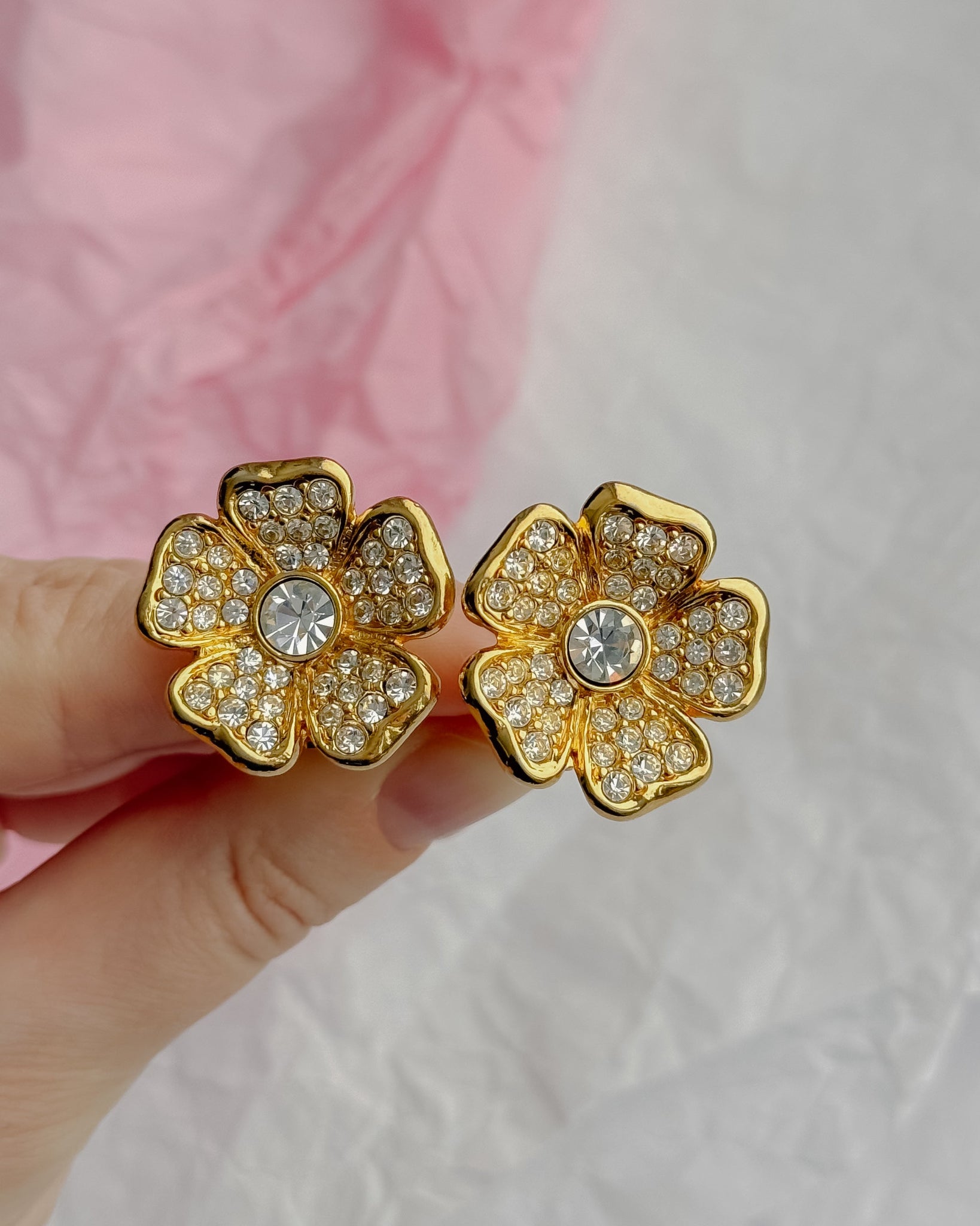 W idealnym stanie. Klipsy w kształcie kwiatów — niesamowicie piękne i idealne do świątecznych stylizacji, które już się zbliżają. Średnica 2,5 cm.