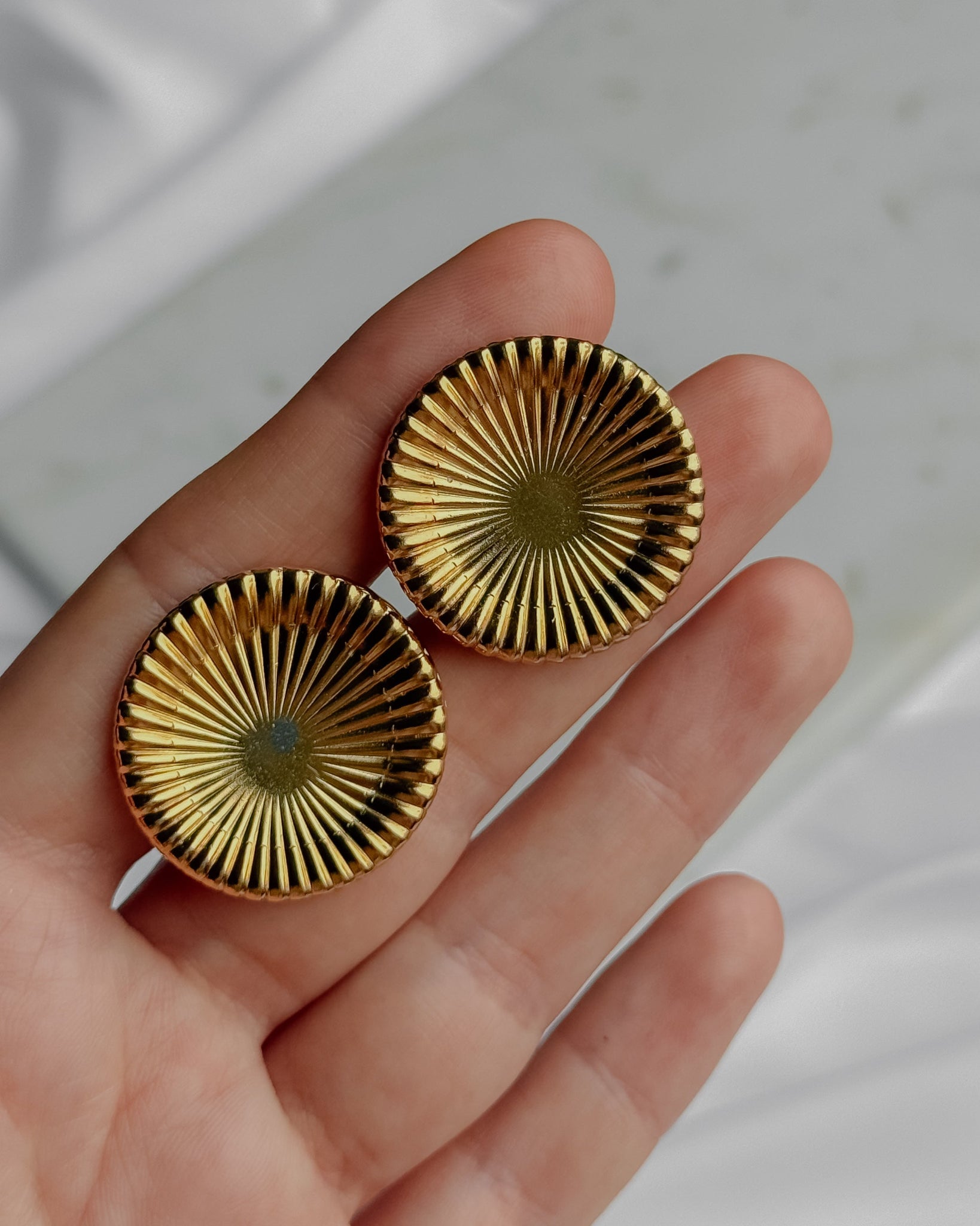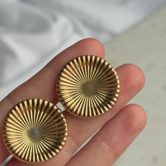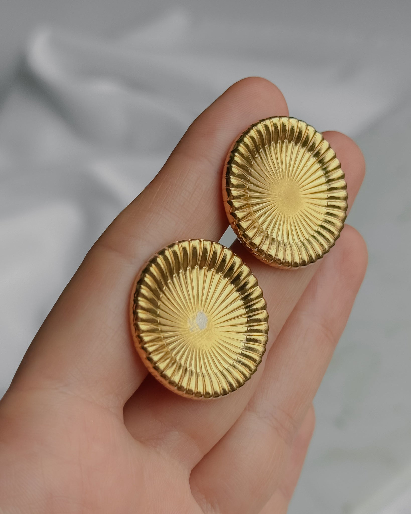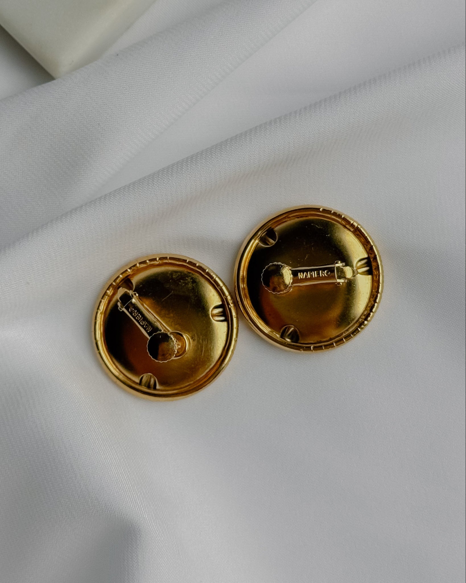 W dobrym stanie. Na jednej klipsie z przodu, na środku, jest lekkie przetarcie. Średnica 2,3 cm. Stan 8/10