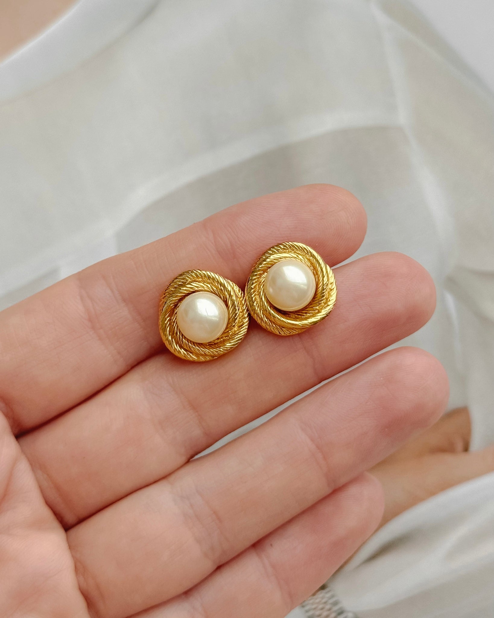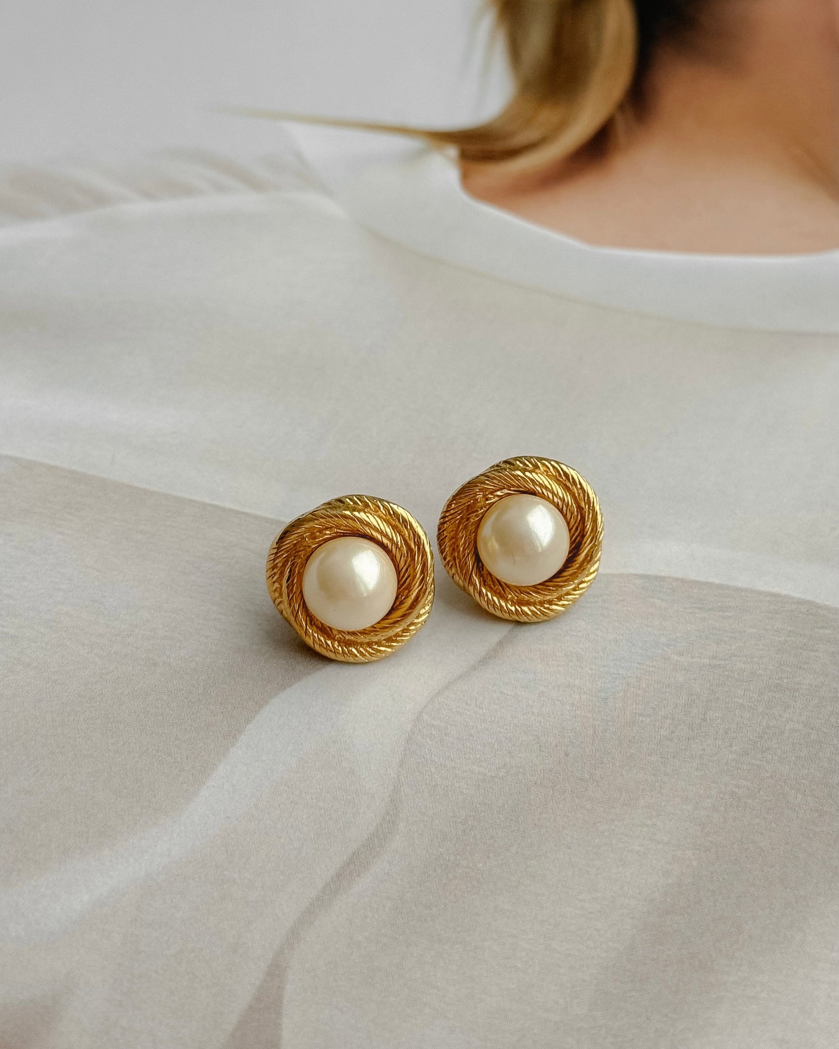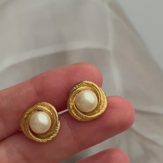 Kolczyki Monet, pozłacane ze sztucznymi perełkami.